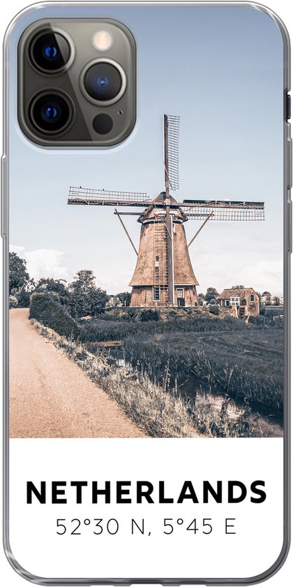 Coque iPhone 13 Pro - Pays- Nederland - Moulin à vent - Pâturage - Coque en Siliconen téléphone