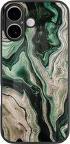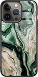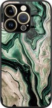 Coque iPhone 13 Pro verre - Marbre vert / Marbre - Vert - Hard Case Zwart - Coque arrière pour téléphone - Water - Casimoda