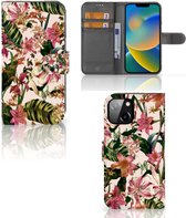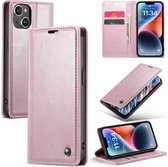 CaseMe - Coque de téléphone adaptée pour Apple iPhone 14 - Etui portefeuille à rabat - Fermeture magnétique - Rose