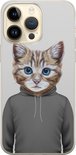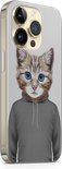Coque iPhone 14 Pro Max silicone - Chat mignon - Coque souple pour téléphone - Chat - Transparent, Grijs