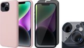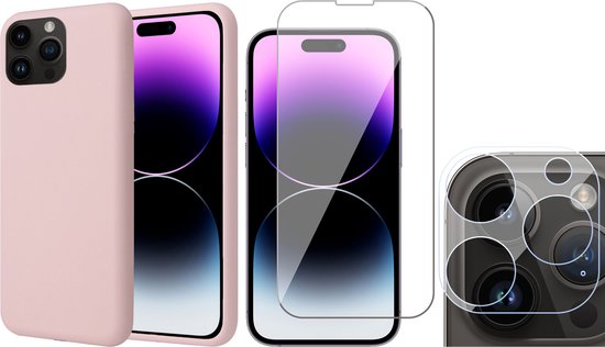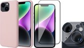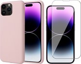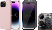 Coque iPhone 14 Pro - Protecteur d'écran GlassGuard & Camera Lens Screen Protector - Coque arrière SoftTouch Rose