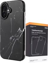 Coque Marbre R2B compatible avec iPhone 16 – Modèle De Bilt – Coque de téléphone avec Protecteur d’écran – Coque GSM – Noir
