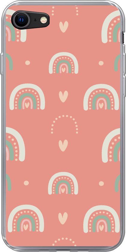 Coque iPhone 8 - Filles - Arc-en-ciel - Hartjes - Motifs - Coque de téléphone en Siliconen -