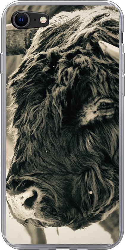 Coque iPhone SE 2020 - Highlander écossais - Neige - Cornes - Coque en Siliconen