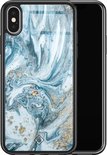 Coque iPhone X/ XS verre - Mer marbrée - Blauw - Hard Case Zwart - Coque arrière pour téléphone - Marbre - Casimoda