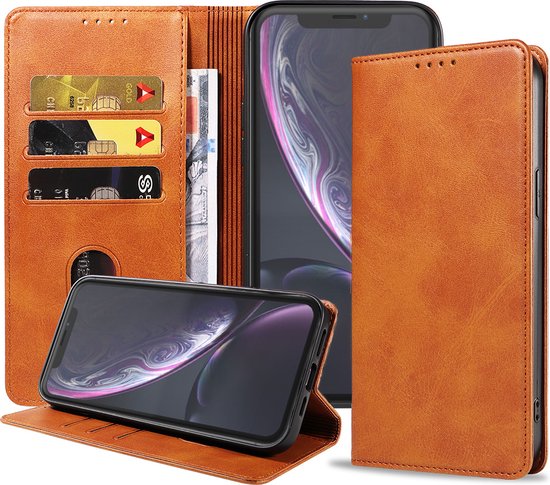 Coque iPhone Xr en Cuir Marron - Coque iPhone Xr en Cuir de Luxe avec Fermeture Magnétique Marron - Housse de Bookcase en Cuir Marron avec Porte-Cartes pour iPhone Xr - Smartphonica