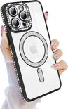 Coque magnétique adaptée pour : iPhone 15 Plus [compatible avec Magsafe] Sparkle Clear Glitter Luxe Antichoc Antidérapant Filles Femmes – Coque en TPU souple – Zwart