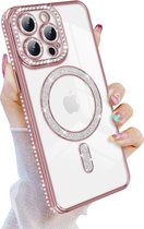 Coque iPhone transparente avec cadre en diamant brillant et Ring MagSafe intégré