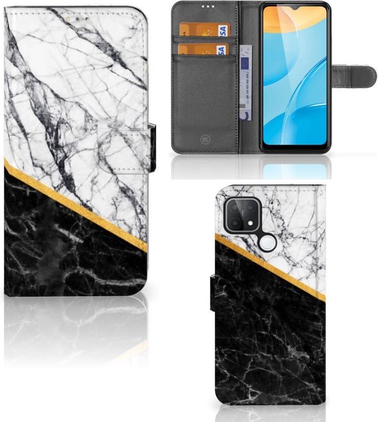 Coque Mobile OPPO A15 GSM Case Marbre White Noir Convient pour OPPO A15
