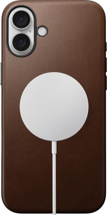 Coque Nomad adaptée à Apple iPhone 16 Plus | Étui en cuir moderne | Compatible avec MagSafe et le chargement sans fil | Couverture arrière en Cuir véritable | Marron