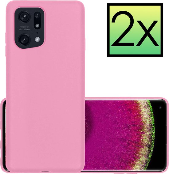 OPPO Find X5 Case Siliconen Back Cover Case - OPPO Find X5 Case Silicone Case Cover - Rose Clair - 2 Pièces