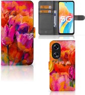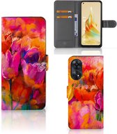 Coque OPPO Reno8 Pro Cuir PU Premium Housse Portefeuille Coque pour Tulipes
