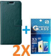 Coque pour iPhone 13 Mini - Bookcase - Espace pour 3 cartes - Cuir Artificiel - avec 1x Protecteur d'écran trempé - SAFRANT1 - Vert Foncé