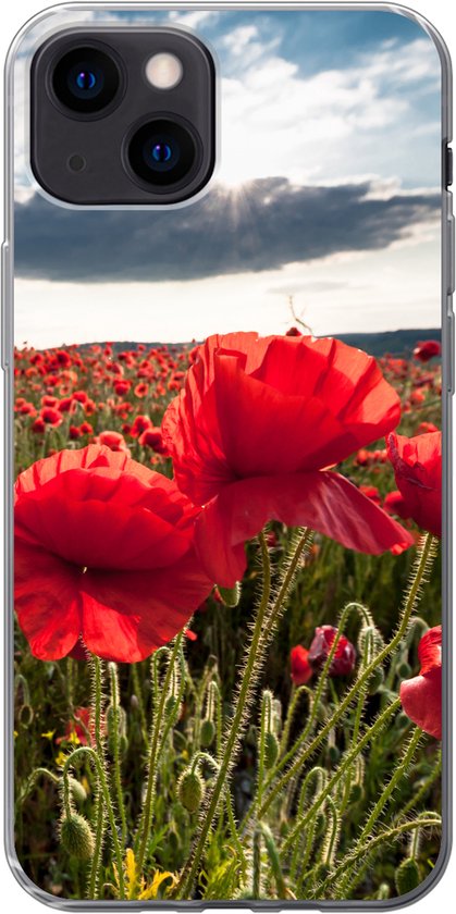 Coque pour iPhone 13 mini - Coquelicots contre un ciel d'orage dramatique - Coque en Siliconen pour téléphone