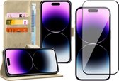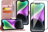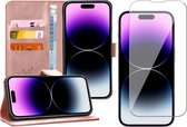 Coque pour iPhone 14 Pro Max - Étui livre en Cuir , portefeuille, porte-cartes, or rose - Protecteur d'écran en Tempered Glass trempé