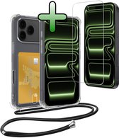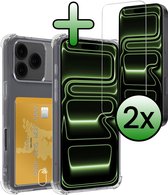Coque pour iPhone 14 Pro Shock Case et porte-cartes avec 2x protecteurs d'écran en Tempered Glass - Coque pour iPhone 14 Pro Protecteur d'écran en verre de protection porte-cartes - Transparent
