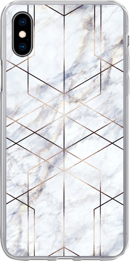 Coque pour iPhone Xs - Marbre - Or - Wit - Coque de téléphone en Siliconen
