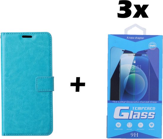 Samsung Galaxy A32 4G - Bookcase Turquoise - Etui portefeuille avec 2 pièces Glas Protecteur d'écran