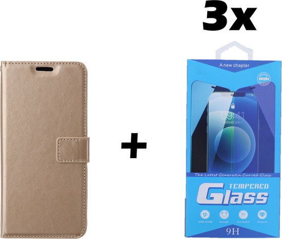 Coque pour Samsung Galaxy S20 Ultra - Bookcase - Espace pour 3 cartes - Similicuir - avec 3x Protecteur d'écran trempé - SAFRANT1 - Or