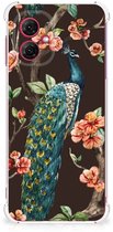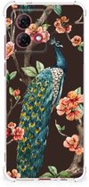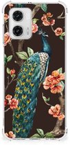 Coque pour smartphone compatible avec Motorola Moto G54 Coque de protection avec bord transparent Paon avec Fleurs