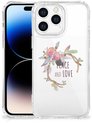 Coque de protection pour téléphone portable Apple iPhone 14 Plus, jolie coque arrière en TPU avec bord transparent, texte Boho