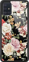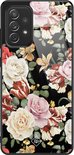 Coque Samsung A52 en verre - Fleurs flower power | Samsung Galaxy A52 5G | Coque arrière rigide noire