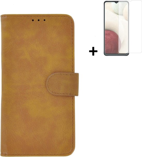 Coque Samsung Galaxy A03s - Protecteur d'écran Samsung Galaxy A03s - Bookcase Portefeuille Marron + Protecteur d'écran