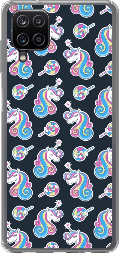 Coque Samsung Galaxy A12 - Fille - Unicorn - Bonbon Sucette - Motifs - Coque de téléphone en Siliconen -