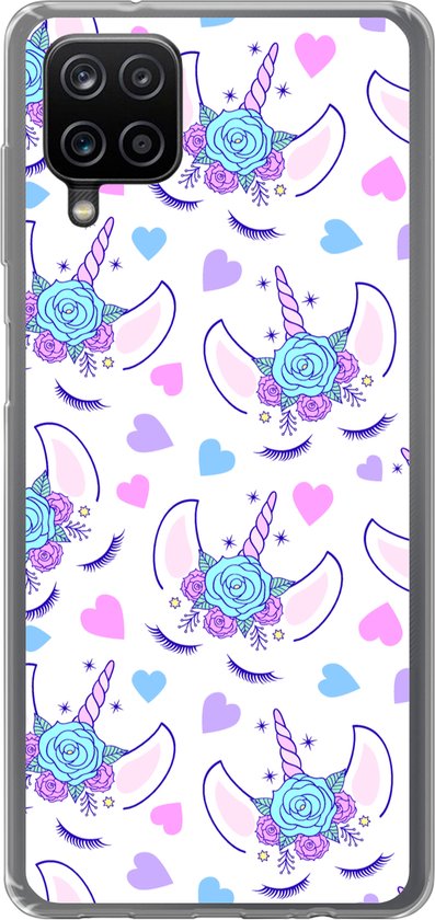 Coque Samsung Galaxy A12 - Meiden - Unicorn - Fleurs - Motifs - Fille - Kids - Enfants - Coque de téléphone en Siliconen