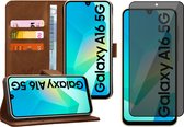 Étui adapté pour Samsung Galaxy A16 - Protecteur d'écran de confidentialité en Glas à couverture complète - Étui portefeuille marron