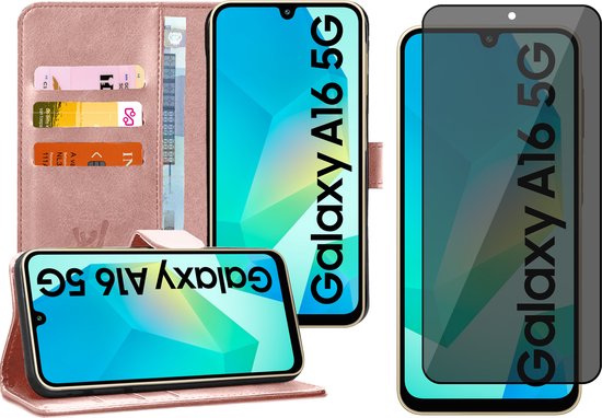 Coque Samsung Galaxy A16 - Protection d'écran de confidentialité en Glas à couverture complète - Étui portefeuille à rabat en or rose