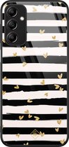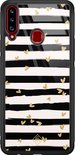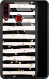 Coque Samsung Galaxy A20s en verre - Rayures coeur - Zwart - Hard Case Zwart - Coque arrière pour téléphone - Rayé - Casimoda