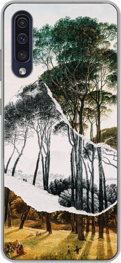 Coque Samsung Galaxy A30s - Pins parasols paysage italien - Art - Hendrik Voogd - Peinture - Zwart et blanc - Maîtres anciens - Coque de téléphone en Siliconen