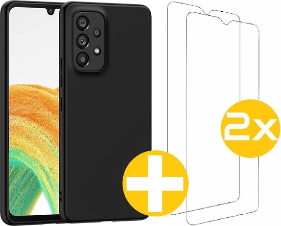 Coque Samsung Galaxy A33 + 2x Protège-écran Samsung A33 | Étui en Siliconen noir | Coque arrière noire + 2x protecteur d'écran | Verre trempé