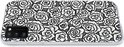Un motif de roses blanches sur fond gris. †