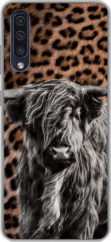 Coque Samsung Galaxy A50 - Scottish Highlander - Imprimé Panthère - Zwart - Wit - Siliconen