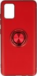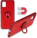 Coque Samsung Galaxy A51 Rouge - Coque Arrière en Siliconen avec Ring Béquille - Compatible avec les Système de fixation pour GPS