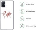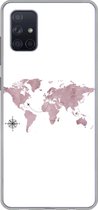 Coque Samsung Galaxy A71 - Wereldkaart - Rose - Peinture - Coque de téléphone en Siliconen