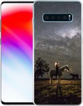 Coque Samsung Galaxy S10 Plus - Cheval - Femme - Ciel étoilé - Coque de téléphone en Siliconen