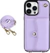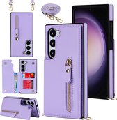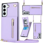 Coque Samsung Galaxy S21 FE - Coque arrière - Cordon - Porte-cartes - Portefeuille - Similicuir - Violet