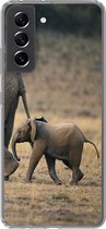 Coque Samsung Galaxy S21 FE - Éléphant - Animaux - Lumière - Forêt - Nature - Animaux sauvages - Coque de téléphone en Siliconen