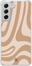 Coque antichoc Samsung Galaxy S21 FE - Tourbillon abstrait beige - Marron/beige - Coque rigide TPU Zwart - Motif géométrique - Casimoda