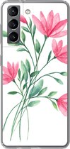 Coque Samsung Galaxy S21 - Fleurs - Tropical - Rose - Siliconen - Sinterklaas - Noël - Cadeaux - Cadeaux chaussures