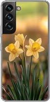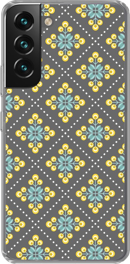 Coque Samsung Galaxy S22 - Design - Diamant - Fleurs - Grijs - Coque de téléphone en Siliconen