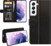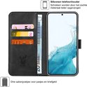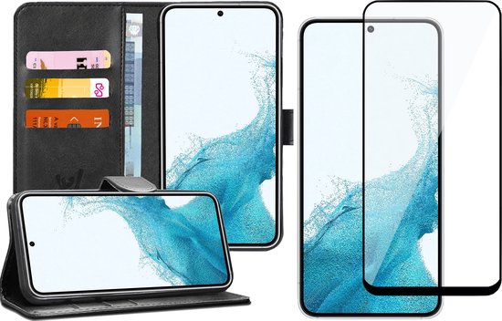 Coque Samsung Galaxy S22 - Etui Portefeuille en Cuir Portefeuille Porte-Cartes Zwart - Protecteur d'écran en Tempered Glass Trempé