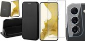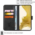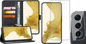 Coque Samsung Galaxy S22 Plus - Book Case Cuir Wallet Cover Wallet Card Holder Case Zwart - Protecteur d'écran en Tempered Glass trempé - Protecteur d'objectif d'appareil photo