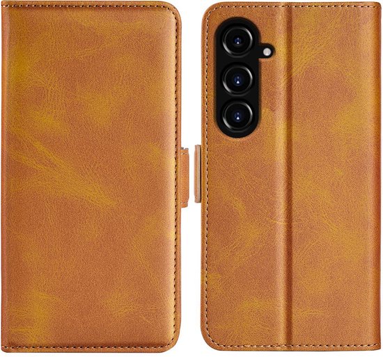 Coque Samsung Galaxy S23 FE - MobyDefend Luxe Wallet Book Case (fermeture latérale) - Marron clair - Étui de téléphone portable - Étui de téléphone adapté pour Samsung Galaxy S23 FE