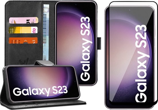 Coque Samsung Galaxy S23 - Protecteur d'écran FullGuard - Étui livre porte Cuir Zwart et protecteur d'écran
