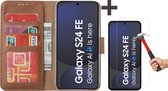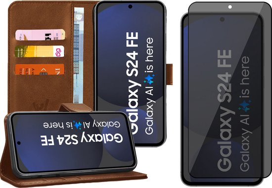 Coque Samsung Galaxy S24 FE - Protection d'écran de confidentialité en Glas à couverture complète - Étui portefeuille à rabat marron