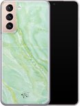 Coque Samsung S21 - Marbre Vert Citron/Menthe | Samsung Galaxy S21 | Étui en Siliconen TPU | Coque arrière pour téléphone Transparent